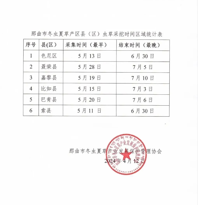 冬蟲夏草是在特殊氣候、特殊地理環(huán)境下發(fā)育形成的菌蟲復(fù)合體,那曲冬蟲夏草生長(zhǎng)在平均海拔4800m左右的高山上,因其生長(zhǎng)區(qū)域海拔高,冬蟲夏草采挖季節(jié)相比其他產(chǎn)區(qū)采集時(shí)間較晚,為維護(hù)“那曲冬蟲夏草”品牌聲譽(yù),保護(hù)產(chǎn)區(qū)農(nóng)牧民、經(jīng)營者和廣大消費(fèi)者的合法權(quán)益,促進(jìn)那曲冬蟲夏草產(chǎn)業(yè)高質(zhì)量發(fā)展,現(xiàn)向社會(huì)告知2024年那曲市各縣(區(qū))冬蟲夏草采挖具體時(shí)間,請(qǐng)廣大消費(fèi)者謹(jǐn)記在這之前聲稱“新鮮那曲冬蟲夏草”的均屬冒充“那曲冬蟲夏草”行為,請(qǐng)廣大消費(fèi)者不要上當(dāng)。同時(shí),我協(xié)會(huì)倡議所有蟲草行業(yè)從業(yè)人員堅(jiān)決杜絕人工繁育蟲草冒充“那曲冬蟲夏草”欺騙消費(fèi)者的違法行為,堅(jiān)決杜絕以假亂真、以次充好的不法行為。
